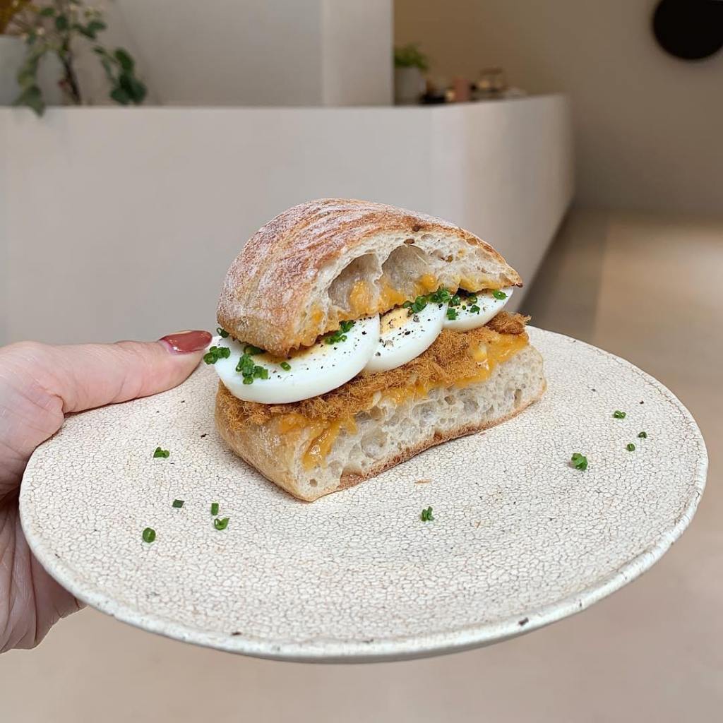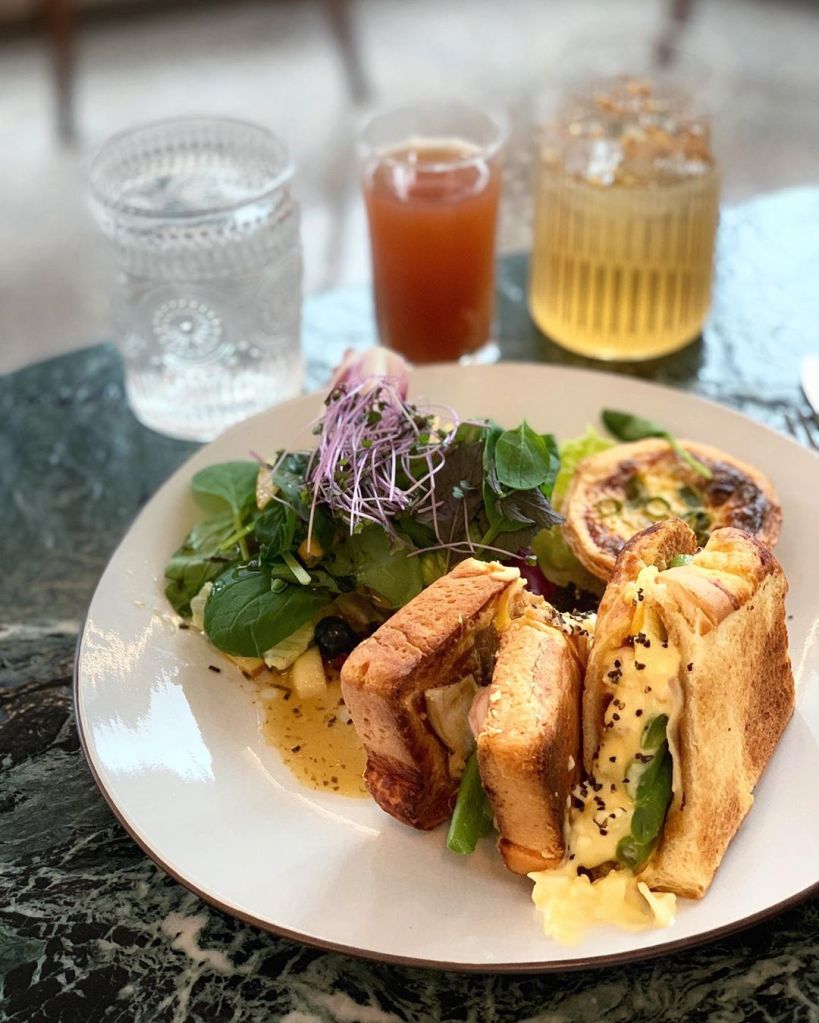 貳房苑 Livingreen–get their bay area fresh shrimp brunch and try a few desserts. I’ve tried a few other menu options and they weren’t nearly as good as the shrimp brunch which comes with a shrimp sandwich and a house made savory egg tart with a side of salad. The salty egg dark chocolate ganache and the lychee tart are the two standout dessert choices for me.